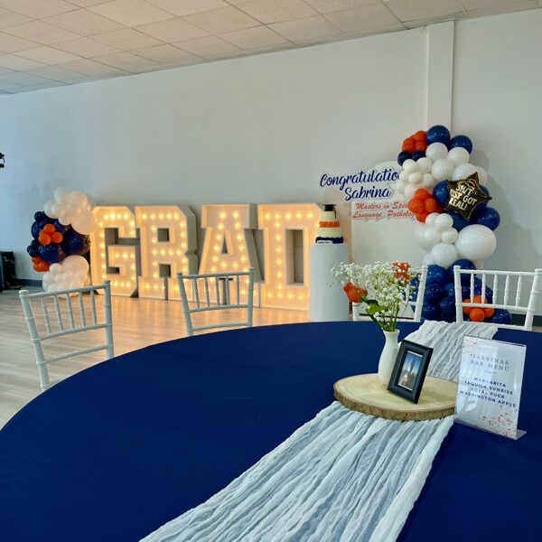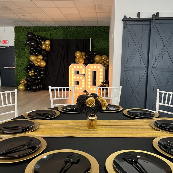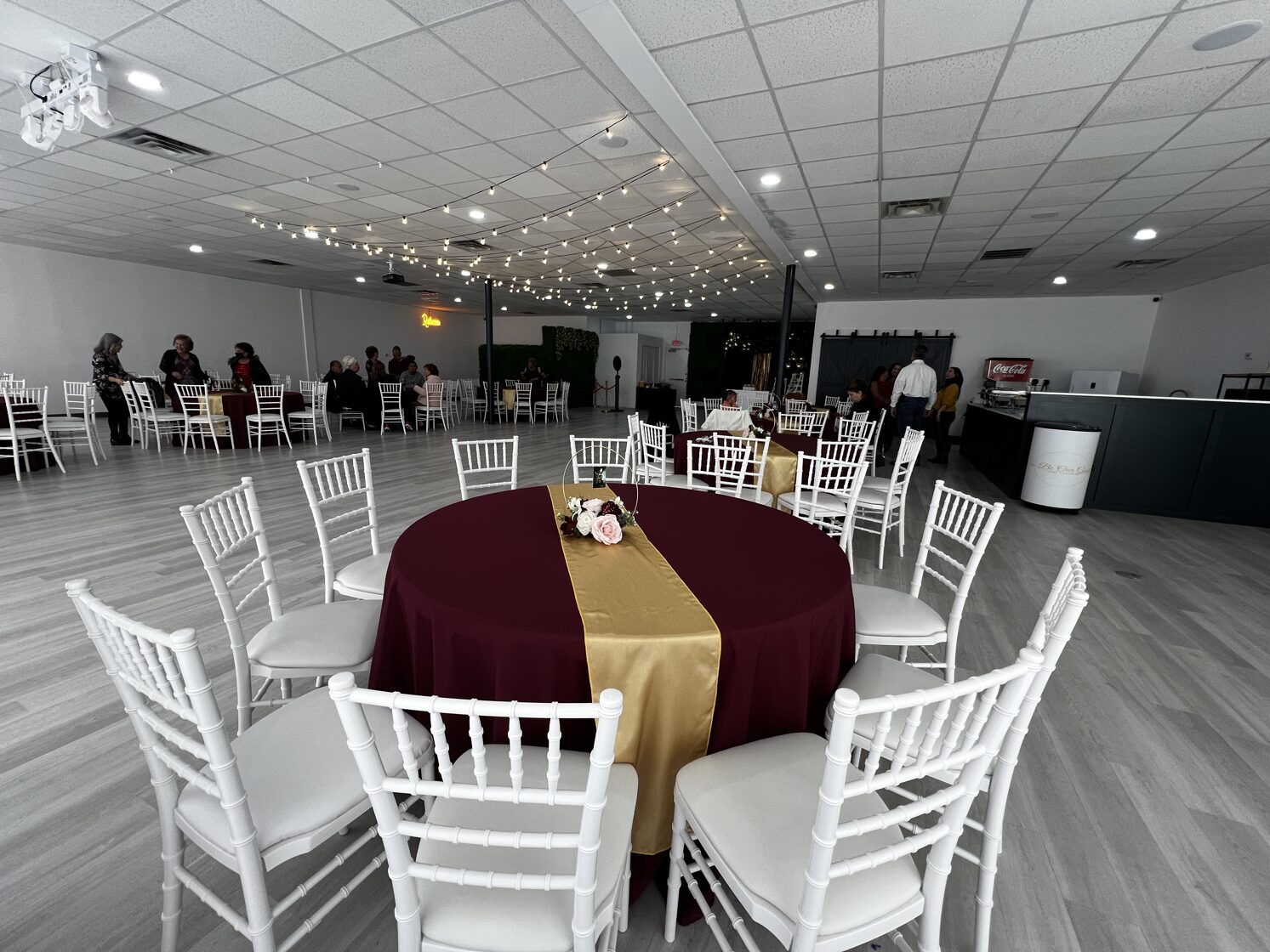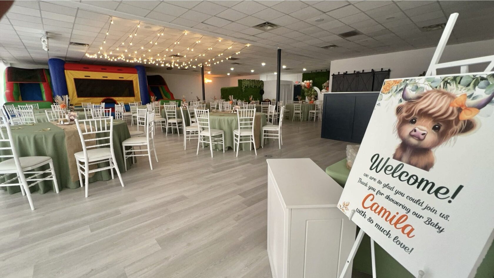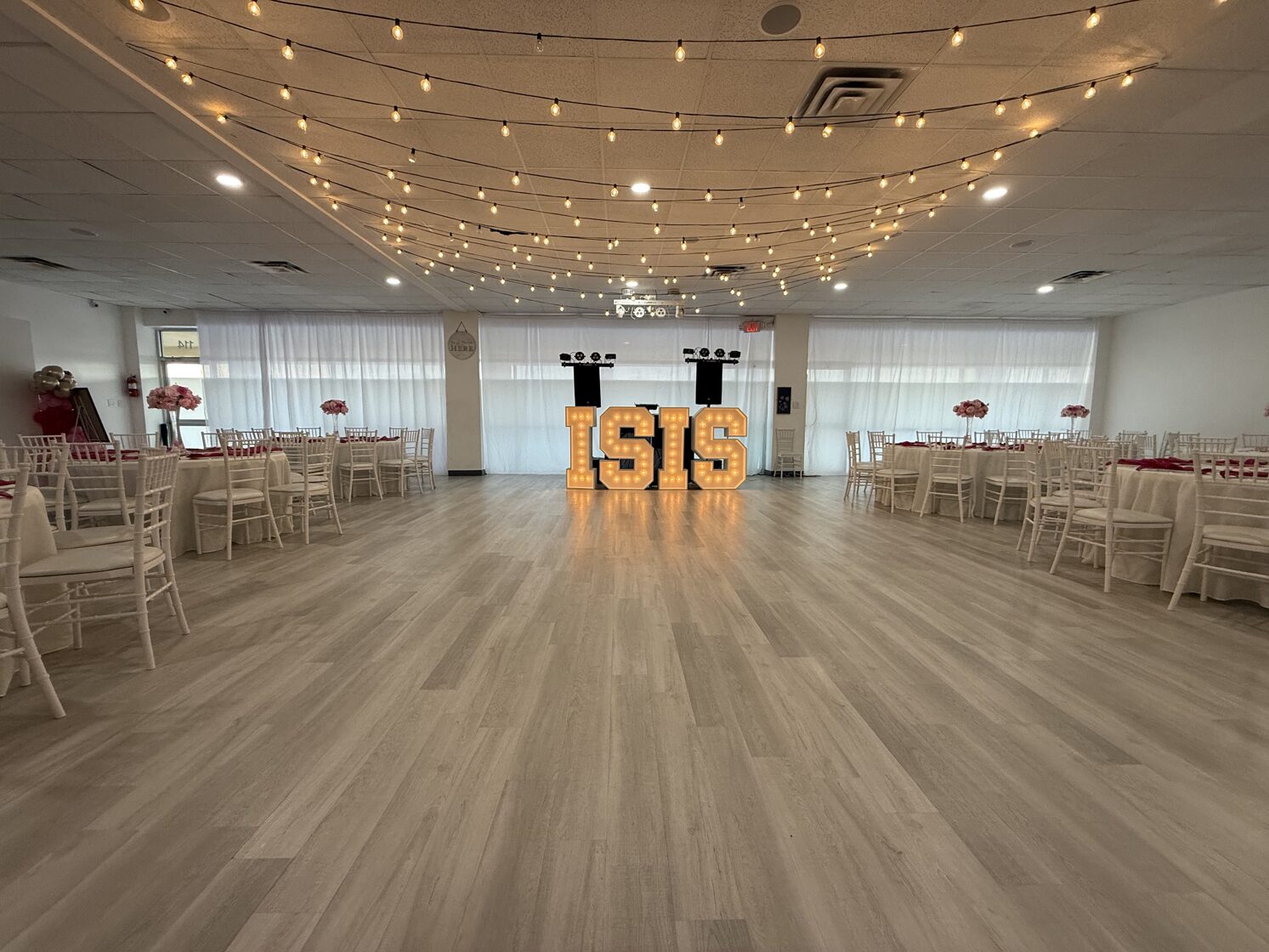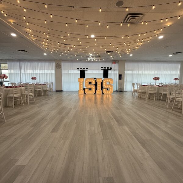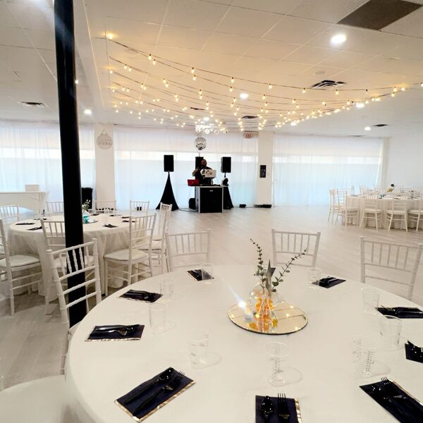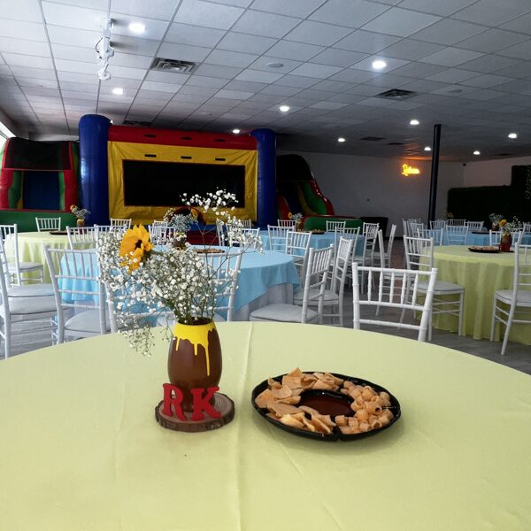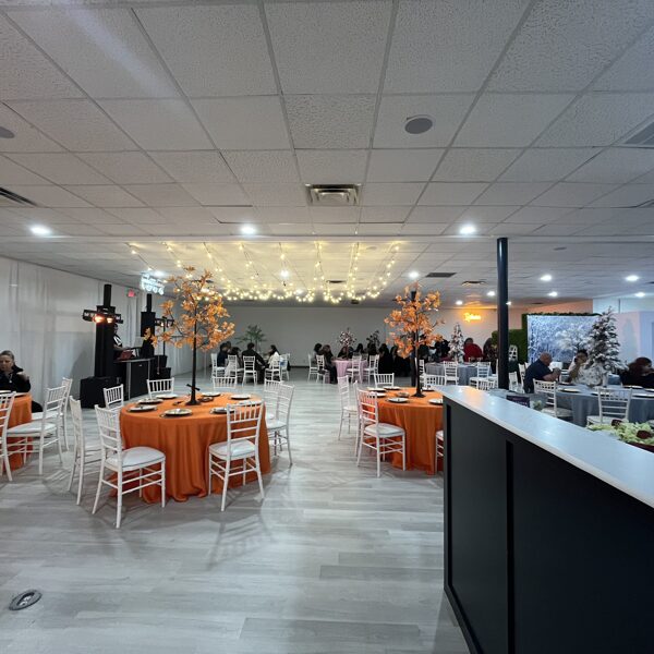 Every event is unique. Layouts adjust to your needs. Jumping balloons are optional with two design styles available, or they can be removed for events such as weddings or occasions that require a larger dance floor. 120 capacity.