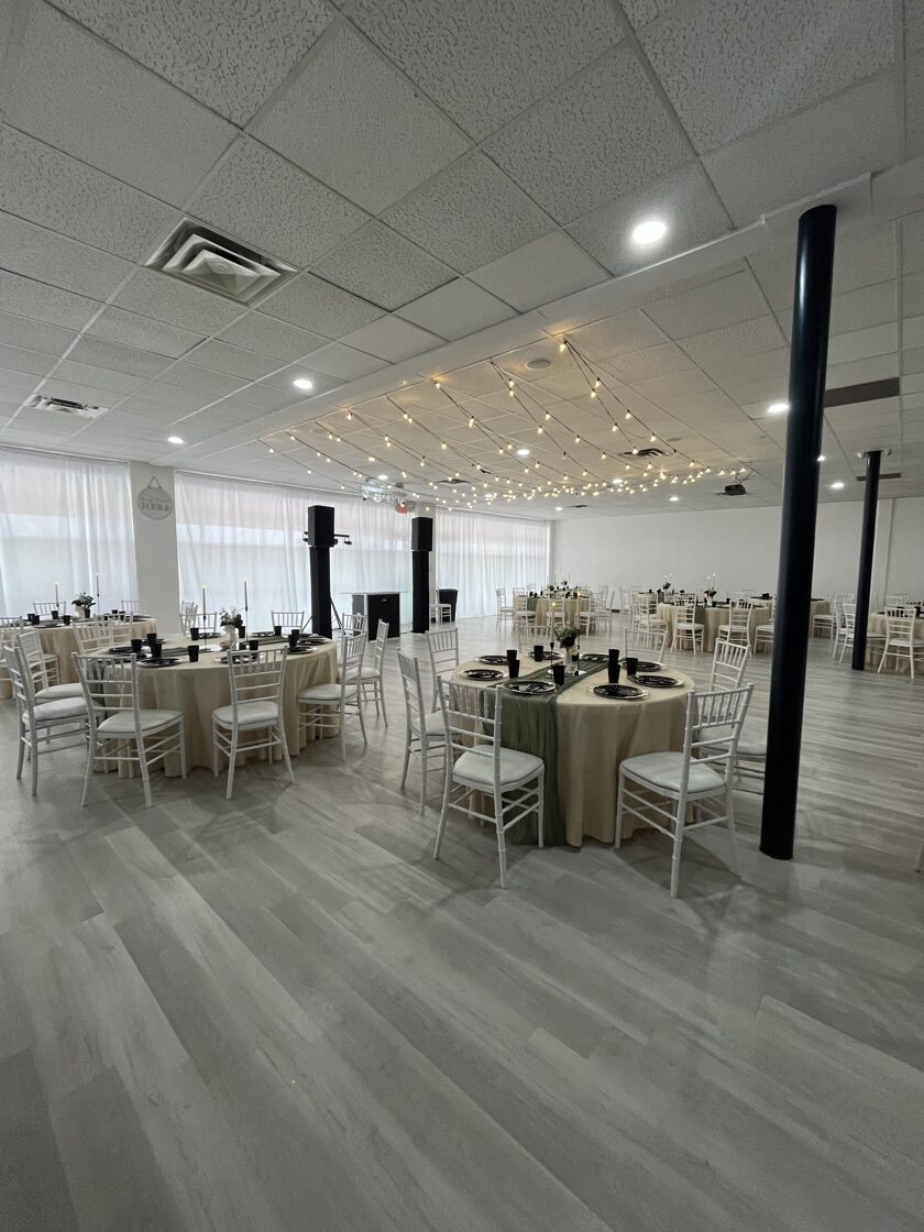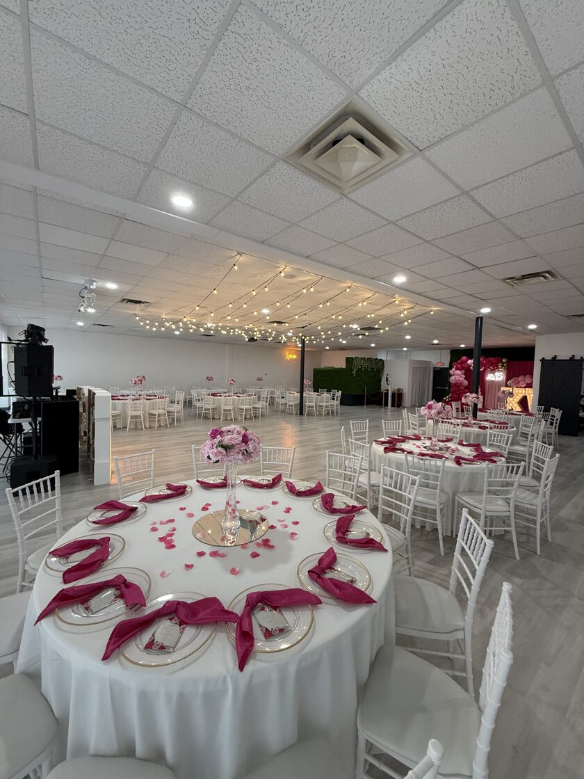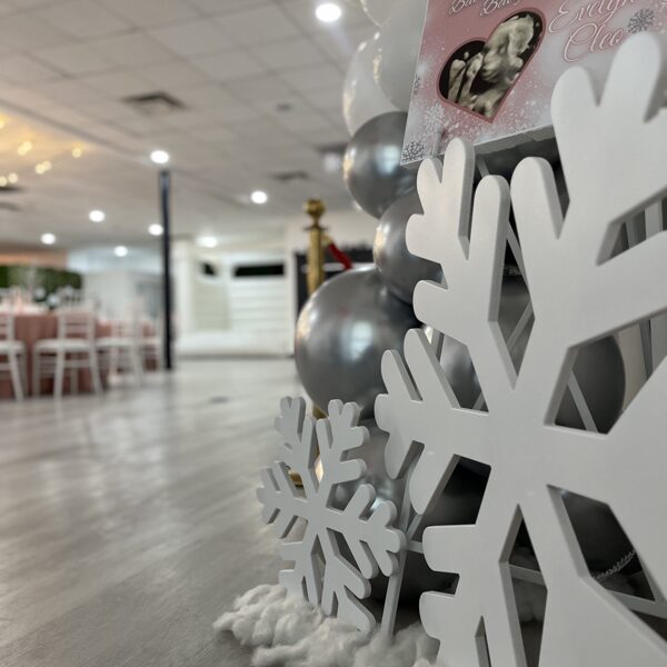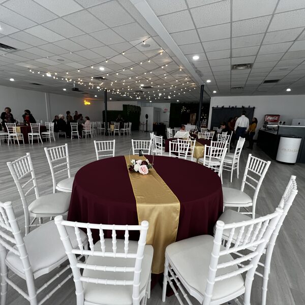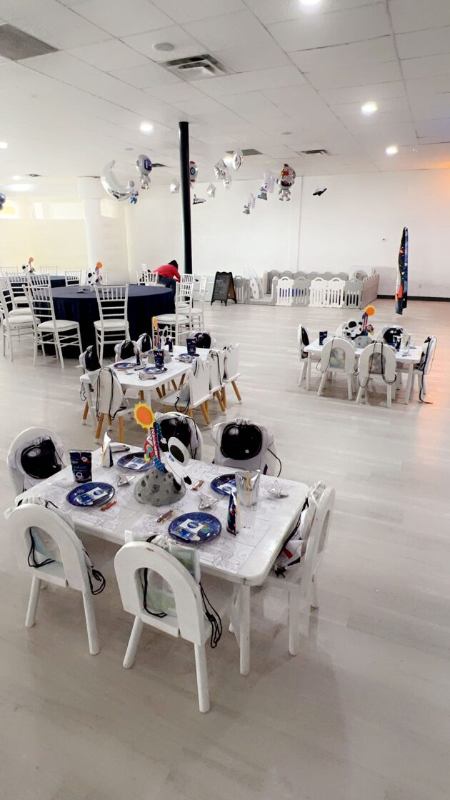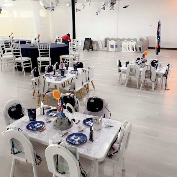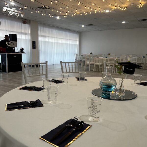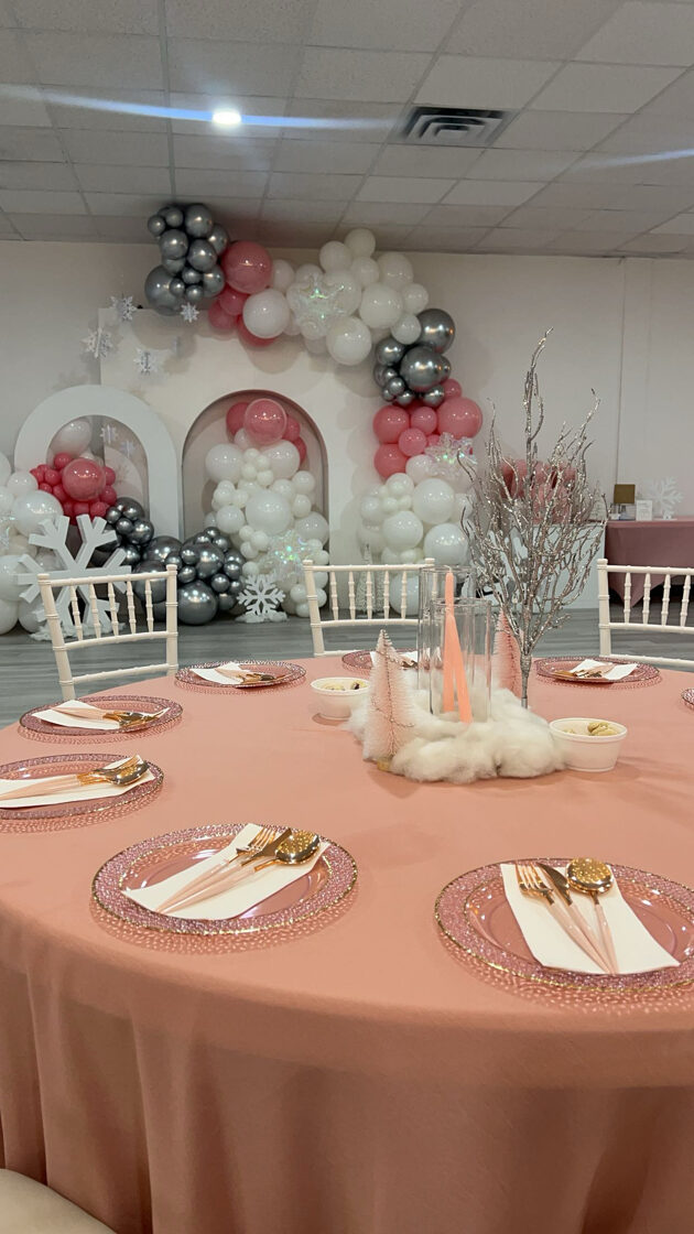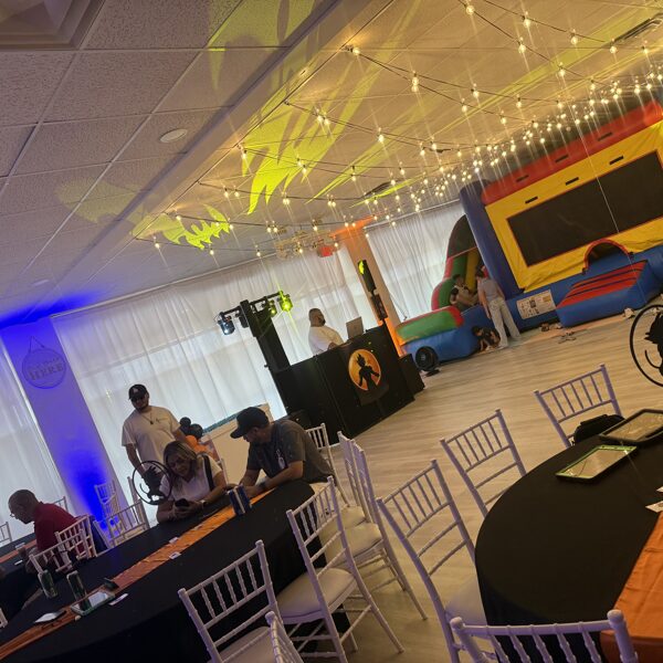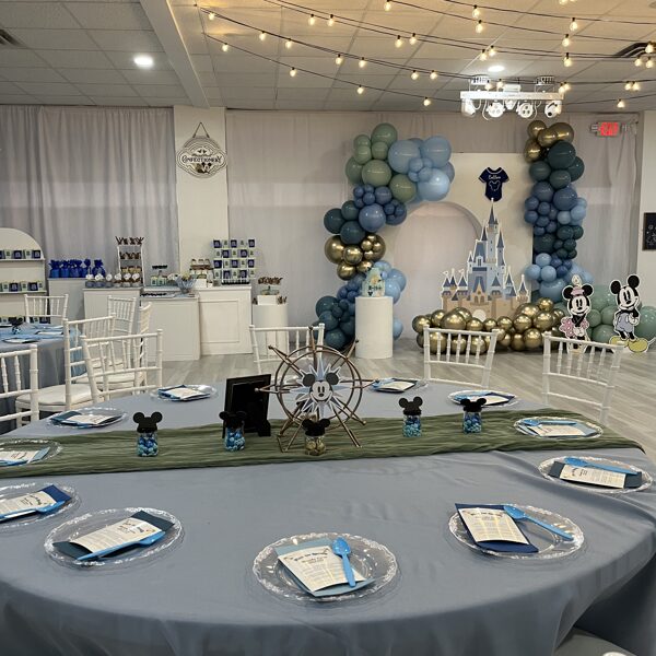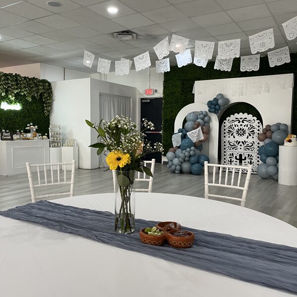 Every event is unique. Layouts adjust to your needs. Jumping balloons are optional with two design styles available, or they can be removed for events such as weddings or occasions that require a larger dance floor. 120 capacity.