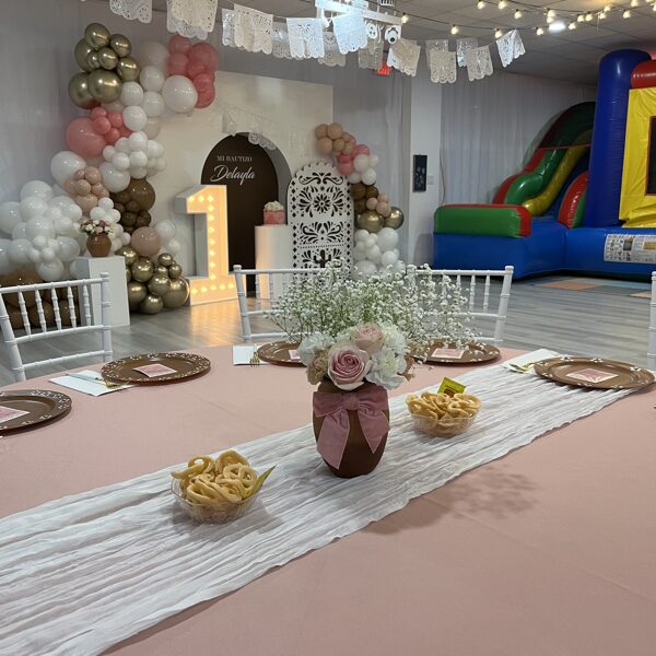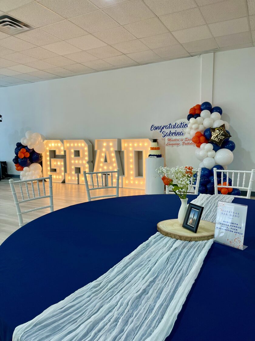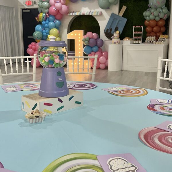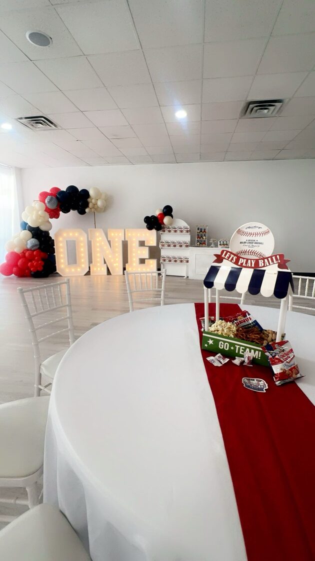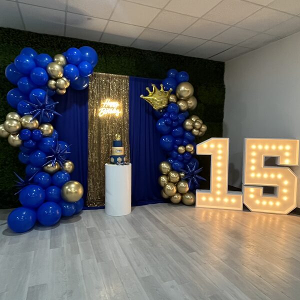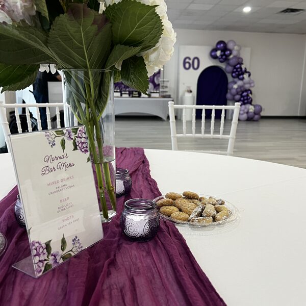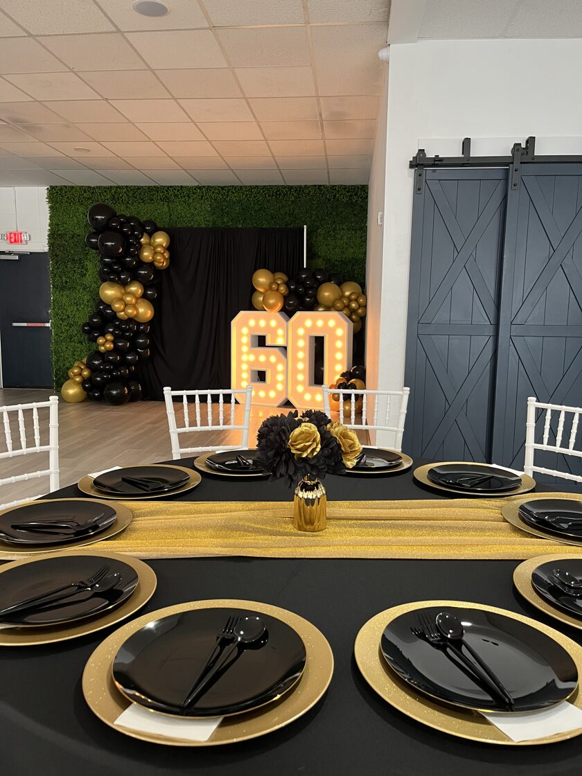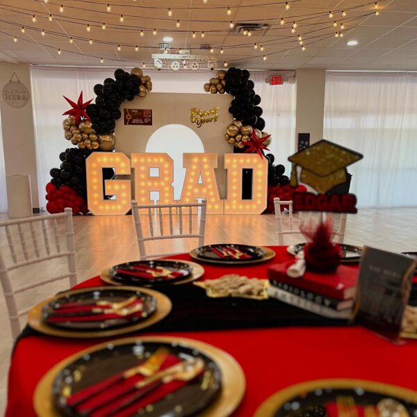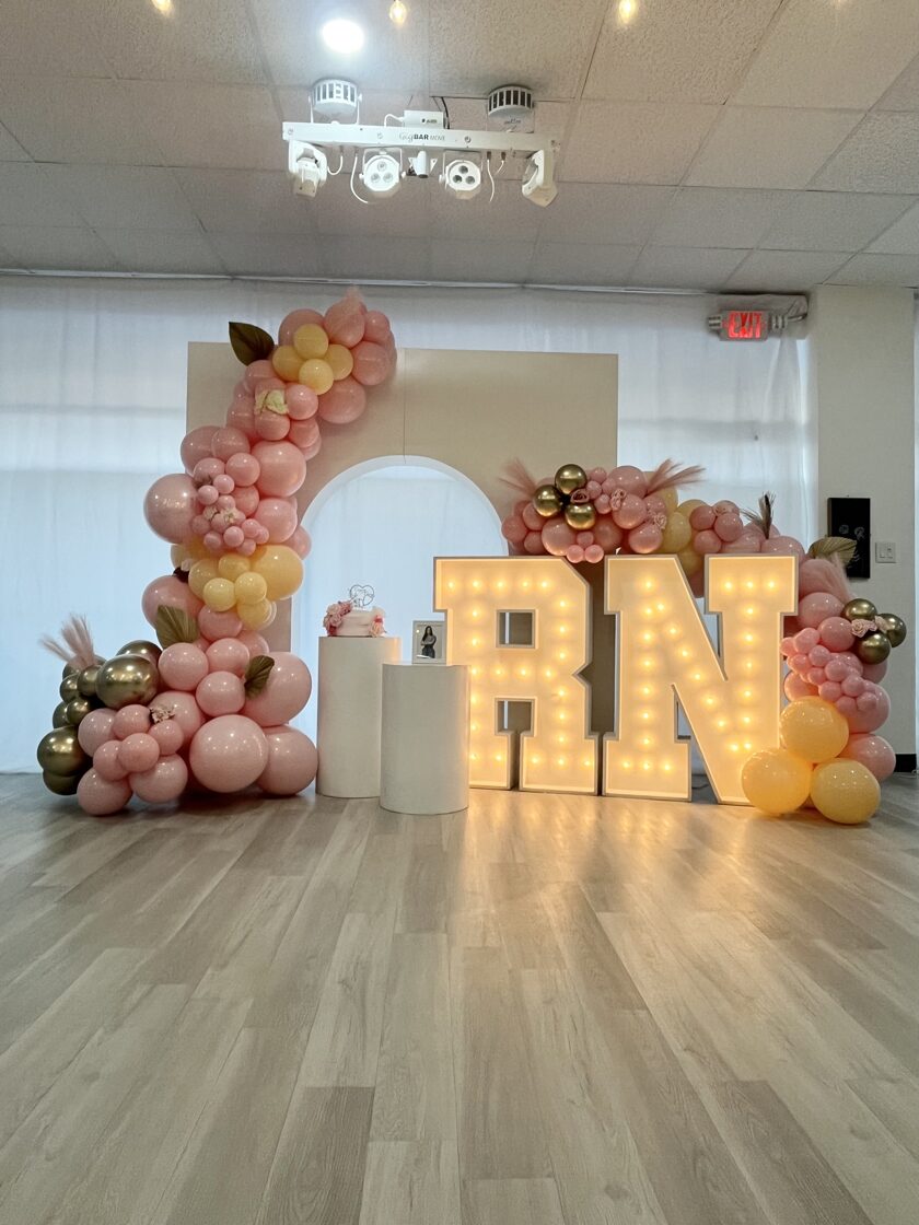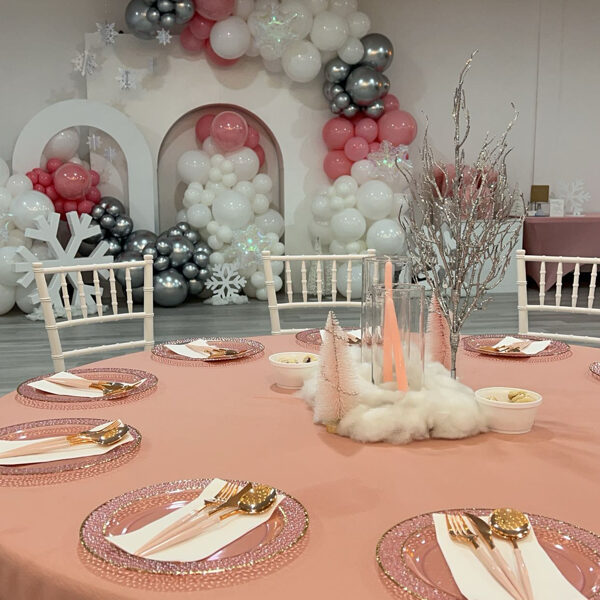 Every event is unique. Layouts adjust to your needs. Jumping balloons are optional with two design styles available, or they can be removed for events such as weddings or occasions that require a larger dance floor. 120 capacity.