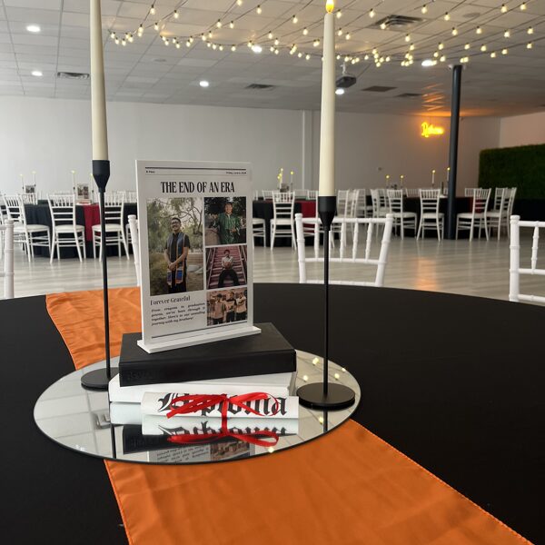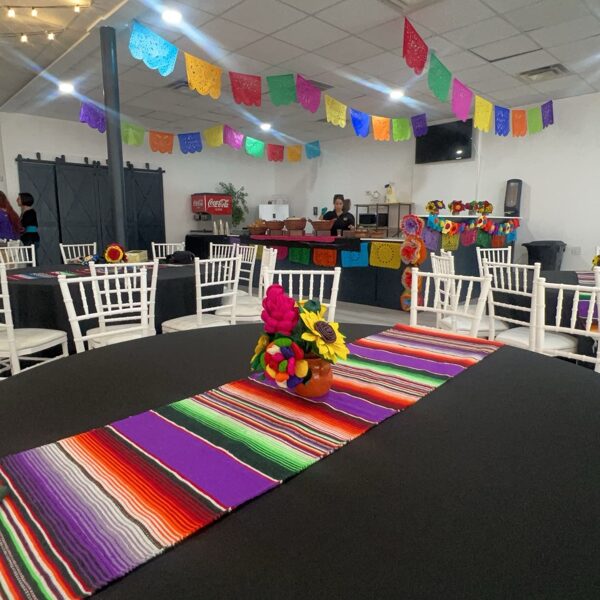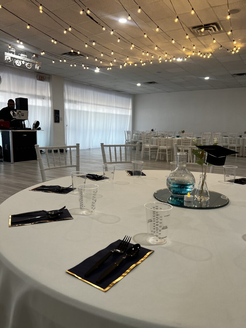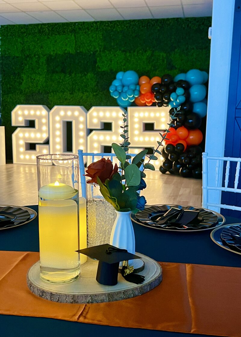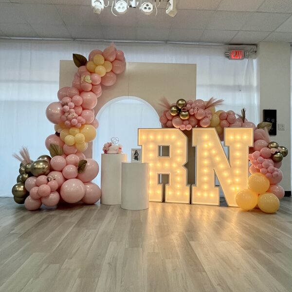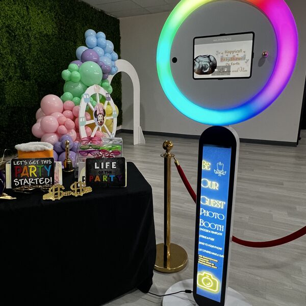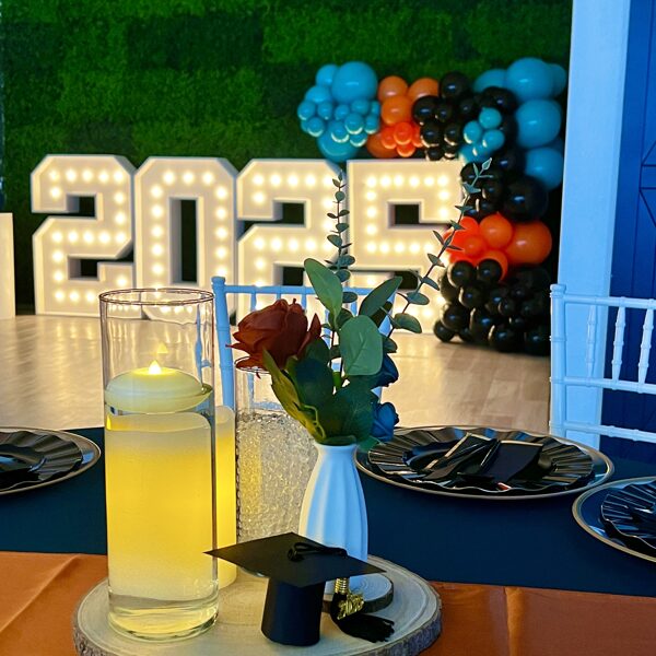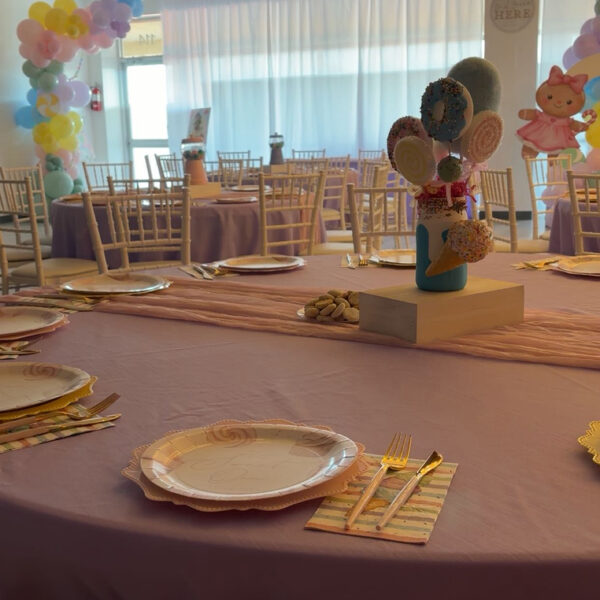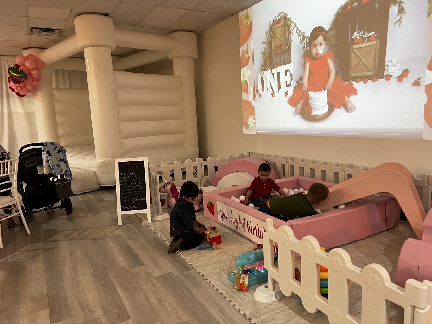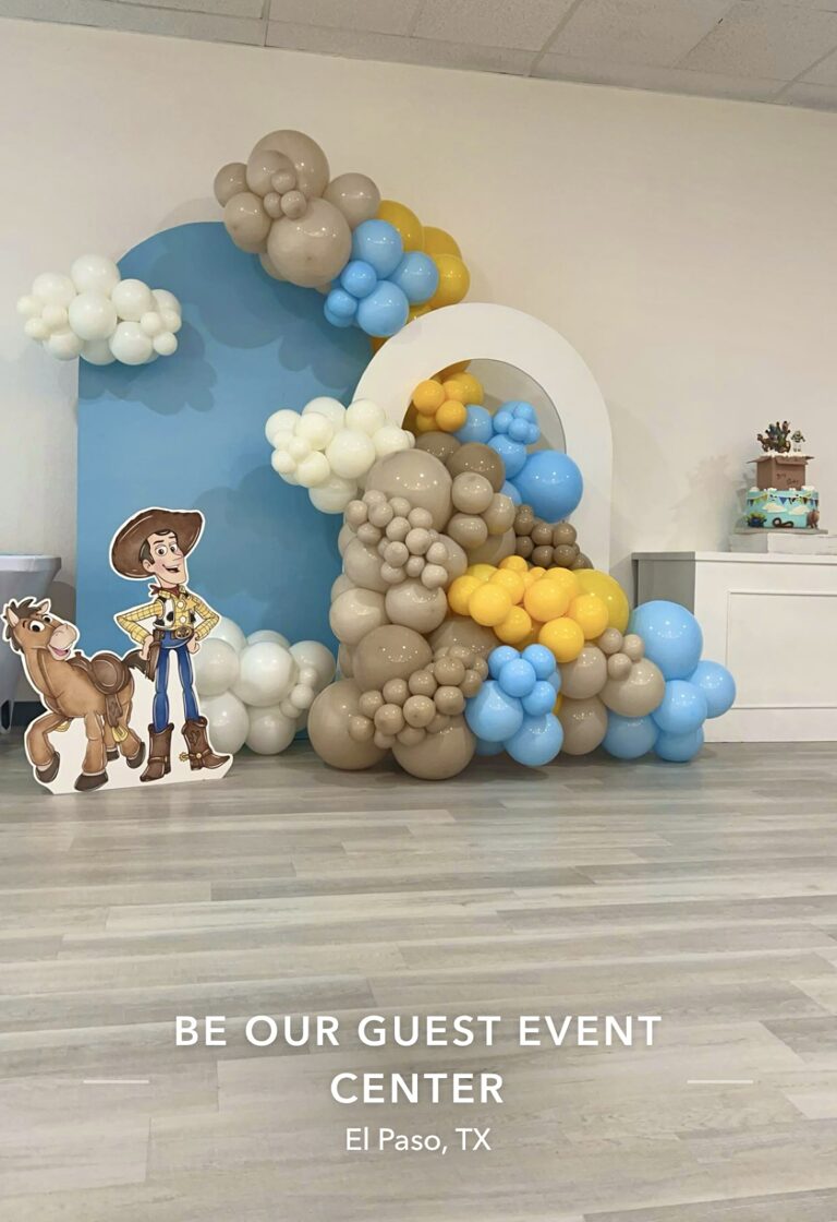 Every event is unique. Layouts adjust to your needs. Jumping balloons are optional with two design styles available, or they can be removed for events such as weddings or occasions that require a larger dance floor. 120 capacity.